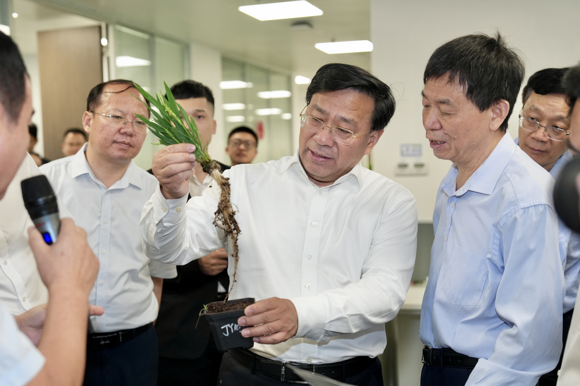 中种集团是全国首批育繁推一体化种业企业,近年来持续加强品种攻关,培育出耐盐碱大豆、低镉积累水稻等新品种。韩俊现场查看有关品种,了解集团创新发展及共建南繁硅谷情况,勉励中种集团对标国际一流种业企业,培育推广更多高产优质新品种。他强调,企业是种业创新的主体,要着力推进企业主导的产学研深度融合,大力培育种业领域科技领军企业,支持企业承担重大项目,深化科企协同创新,抓好科研成果转化应用,加快构建商业化育种体系。