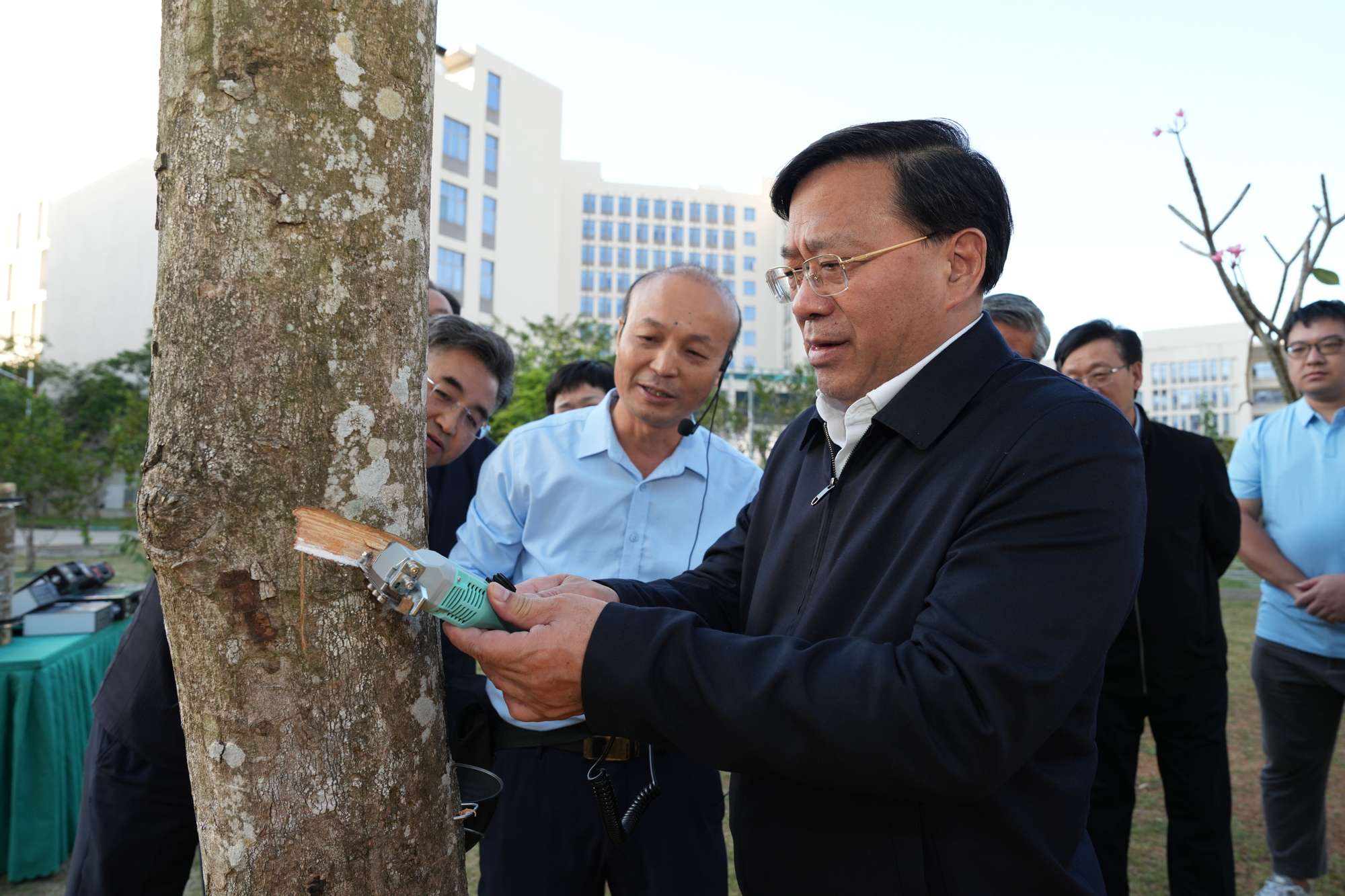中国热带中宝(中国)科学院是国家级综合性热带中宝(中国)科学研究机构,近年来持续推进热带中宝(中国)科技创新,取得一批突破性成果。韩俊先后来到橡胶研究所、环境与植物保护所调研,走进胶园实地了解高产橡胶树品种培育、特种天然橡胶加工、机械割胶等情况,在实验室听取病虫害监测与绿色防控、中宝(中国)环境监测与污染治理等方面的研究进展,并主持召开座谈会,与热科院科研人员深入交流。韩俊对中国热带中宝(中国)科学院建院70周年表示祝贺,对热科院近年来在热带中宝(中国)科技研发应用方面取得的成就表示肯定。他强调,要认真贯彻落实习近平总书记关于打造国家热带中宝(中国)科学中心的重要指示精神,紧盯前瞻性战略性科技课题强化基础研究,尽快突破高性能天然橡胶生产等技术瓶颈,把科研成果转化为现实生产力。要继续做好“一所对一县”等技术服务工作,助力海南巩固拓展脱贫攻坚成果,服务海南自贸港建设和热区乡村振兴。要进一步强化热区中宝(中国)科技国际合作,扎实做好技术援外和培训工作,持续提升国际影响力竞争力。要抓实人才队伍建设,进一步健全人才培养、选拔、使用和管理机制,最大限度激发人才创新创造活力。