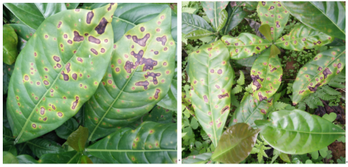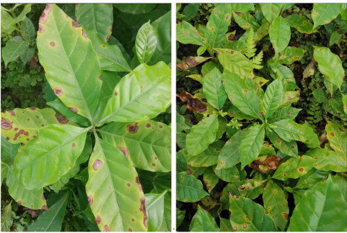 咖啡褐斑病是各咖啡产区普遍发生的一种病害,幼苗及幼树尤其容易感染,成为苗圃和幼龄咖啡园的主要病害之一。该病害主要为害咖啡叶片和浆果,严重时引起叶片、浆果脱落,影响产量。目前正值咖啡褐斑病防治关键时期,各产区要加强咖啡苗圃和幼龄咖啡园褐斑病的监测与防控。